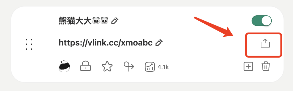 注册VLink后,你将拥有一个永久专属链接,作为您的链接聚合主页 (1)点击右上角分享按钮 (2)点击复制链接,就可以去粘贴分享啦!! (3)长按或右击保存二维码,就可以通过永久二维码的形式去分享你的主页啦 tips:您还可以使用自己的域名,展示VLink页面,👉 了解自有域名