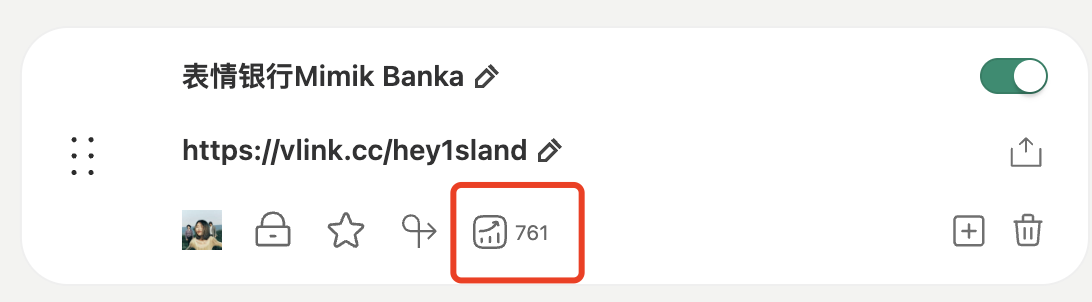 链接添加完成,也分享出去了,如何查看链接的点击情况或者主页的访问情况呢? (1)点击数据统计图标 在未点击的情况下,此处展示了此链接的总点击次数